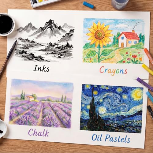 - ورق ألوان مائية متعددة الوسائط: نسيج لطيف بالضغط البارد لأوراق الألوان المائية مناسب للوسائط المختلطة، مثل الرطب والجاف؛ تتيح أوراق الألوان المائية هذه عرض الألوان بشكل جيد لإظهار تجربة رؤية جيدة