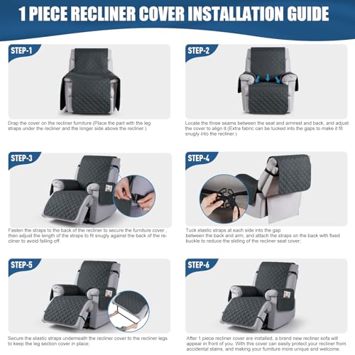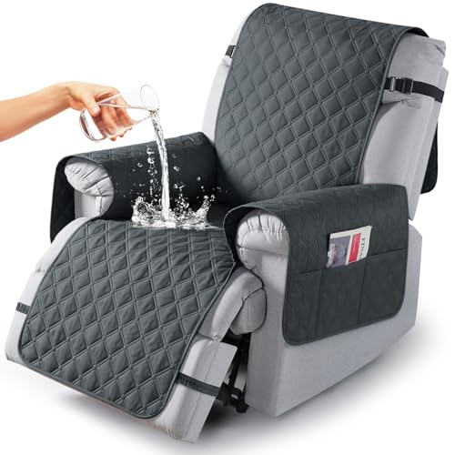 TAOCOCO - غطاء كرسي هزاز مقاوم للماء بنسبة 100% للكنبة مع أشرطة للقوائم، واقي أريكة قابل للاستخدام على الوجهين لكرسي الاسترخاء بتصميم قابل للغسل للحيوانات الأليفة والأطفال من توكوكو -مقاس كرسي 56 سم/رمادي غامق