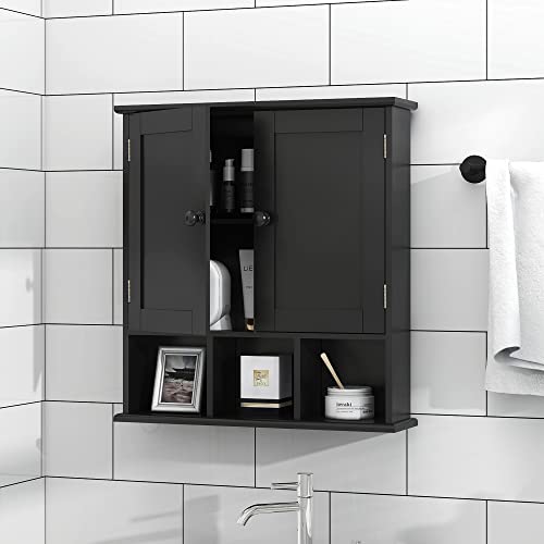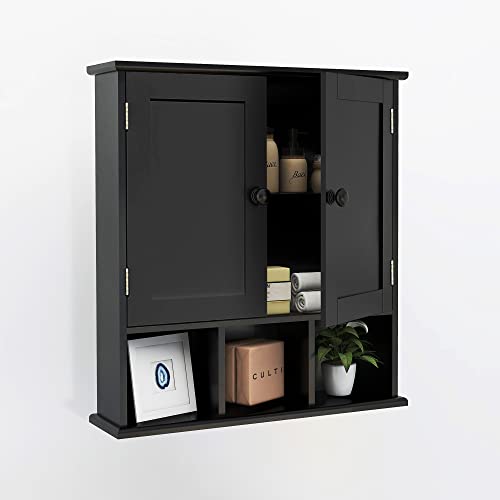 TaoHFE - خزانة حمام من TaoHFE – خزانة حائط للحمام ببابين ورفوف قابلة للتعديل، خزانة تخزين تثبت فوق المرحاض وعلى الجدار، مناسبة للاستخدام في الحمام وغرفة الغسيل أو المطبخ كدولاب للأدوية، لون أسود