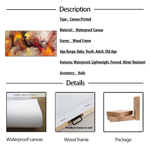 - مقاوم للماء، مقاوم للأشعة فوق البنفسجية، مقاوم للبهتان لأكثر من 50 عامًا في الأماكن المغلقة. لوحة قماشية تجريدية برتقالية مطبوعة بإطار لغرفة النوم