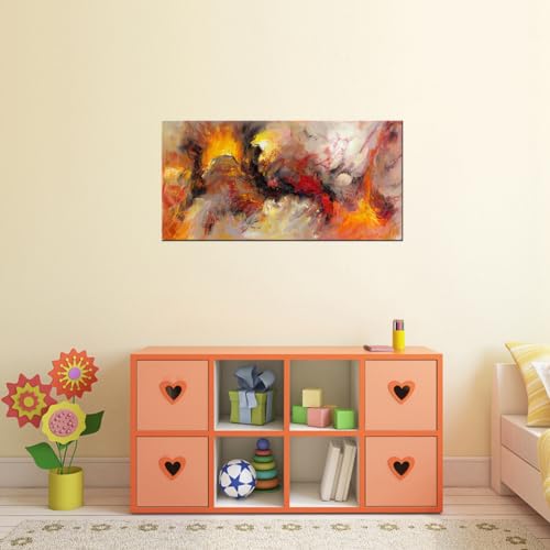 - ديكور غرفة النوم، قد تختلف اللوحة الفعلية قليلاً عن صورة المنتج بسبب العلامة التجارية المختلفة للشاشات. لوحة فنية جدارية قماشية باللون البرتقالي لغرفة المعيشة والمكتب