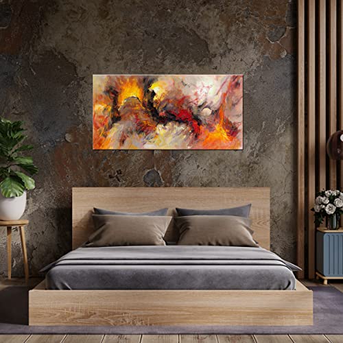 TAOMI - لوحة فنية جدارية تجريدية كبيرة الملمس للمكتب والردهة مقاس 20 × 40 انش قماشية بالوان دافئة بوستر مطبوع لديكور المنزل وغرفة المعيشة وديكور حائط مؤطر للتعليق متعدد