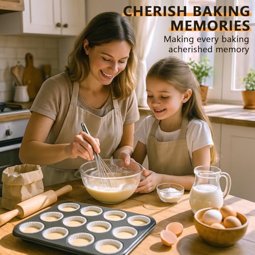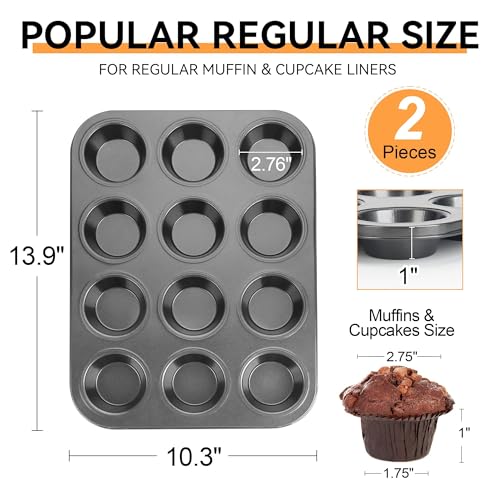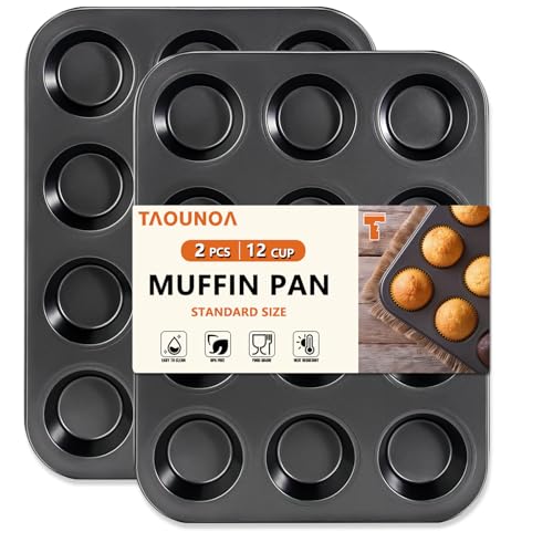 TAOUNOA - قالب قصدير لكيك المافن صينية كب كيك غير لاصقة 12 عين مافن ستيل شديدة التحمل من تاونو طقم قطعتين رمادي
