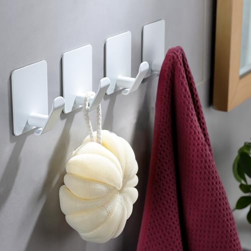 Taozun - تاوزون خطافات لاصقة بيضاء ذاتية اللصق 4 عبوات من المناشف الستانلس ستيل للحمامات المثبتة على الحائط او المطبخ 22.0 رطل 22.0