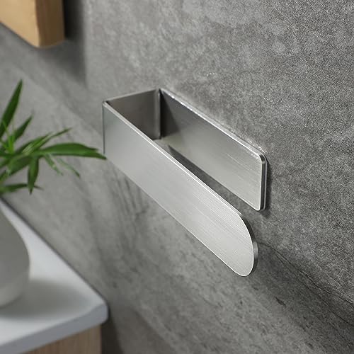 Taozun - حامل فوط يدوي مع 4 خطافات ذاتية اللصق للحمام والمطبخ من الفولاذ المقاوم للصدأ SUS304 من تاوزون، بدون حفر لون فضي