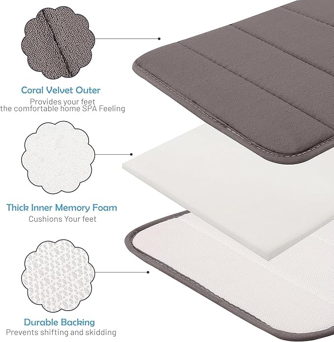 - تخفيف الضغط: تساعد الطبيعة الناعمة والداعمة لرغوة الذاكرة لسجادة الأرضية على توزيع الوزن بالتساوي، مما يخفف الضغط على قدميك ومفاصلك. يمكن أن يكون بساط التجفيف الفائق هذا مفيدًا بشكل خاص إذا كنت تقضي الكثير من الوقت في الوقوف في الحمام أو كنت تعاني من أي إزعاج متعلق بالقدم.