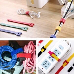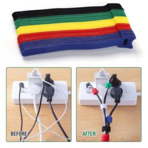 - ترميز ألوان متعدد الاستخدامات: مجموعة من 50 شريط فيلكرو قابل لإعادة الاستخدام بـ 5 ألوان نابضة بالحياة (أصفر وأحمر وأخضر وأزرق وأسود) لترتيب الكابلات بكفاءة وسهولة التعرف عليها.