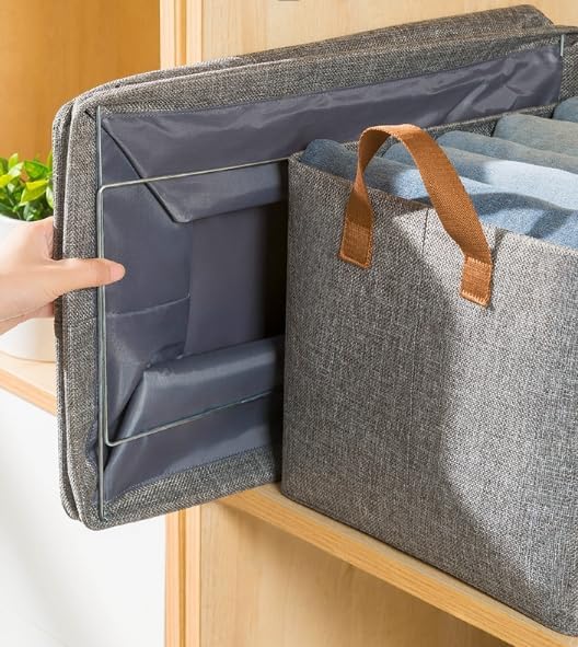 TAPIT - سلة تخزين بإطار معدني بسعة 23 لتر من الكتان من تابيت، سلال رفوف قماشية قابلة للطي، سلة تخزين لتنظيم رفوف دولاب الملابس وغرفة النوم (رمادي، 6 قطع)