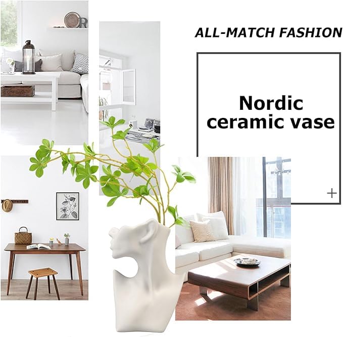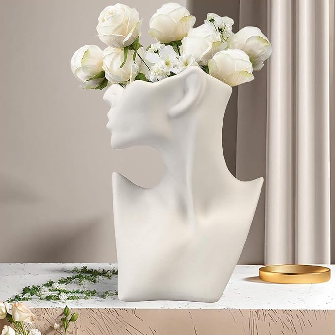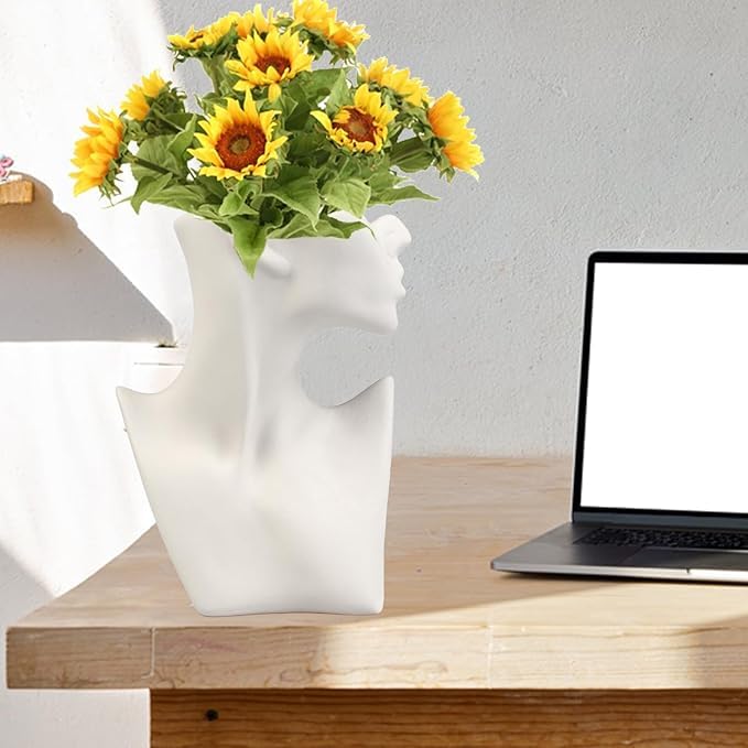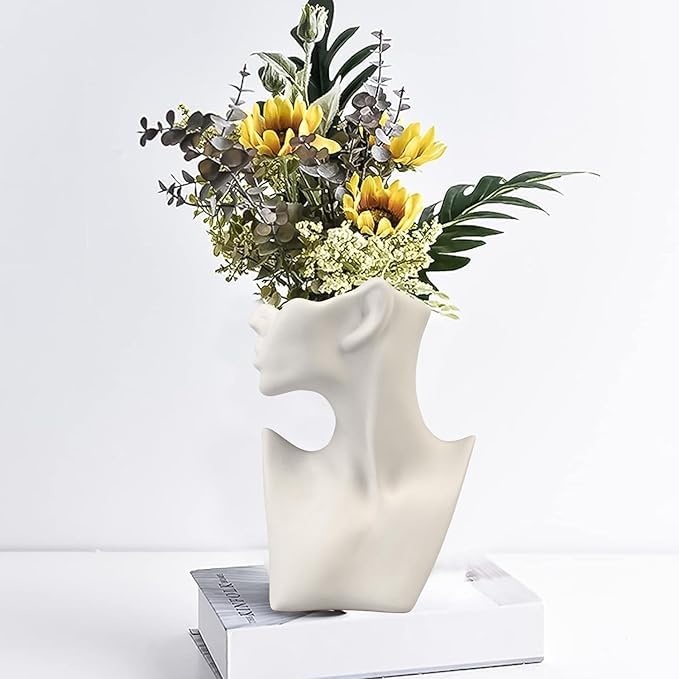 - فازة بتصميم جسم إنسان عالية الجودة: تتميز هذه الفازة السيراميك للديكور بتصميم رأس بنت فريد من نوعه مما يمنح الفازة إحساسًا مميزًا بالجمال والأناقة. يبرز التصميم الديكوري من كل زاوية ويضيف لمسة عصرية تجريدية إلى غرفتك.