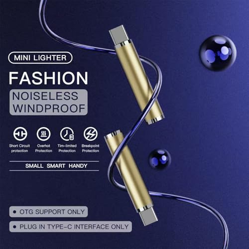 Namifin - ولاعة USB نوع C من تارجيل، تدعم او تي جي للهاتف المحمول، ولاعات شموع كهربائية للشموع والشواية والمزيد من شعلة البوتان، ولاعة قوس بدون لهب ومقاومة للرياح، توصيل في نفس اليوم (1، ذهبي)