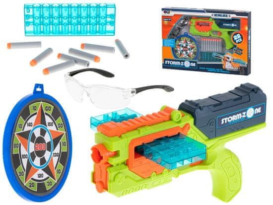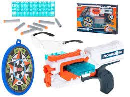 - مجموعة كاملة: تتضمن مسدس لعبة مع مخزن ورصاصات فلينتلوك ونظارات أمان واقية ولوحة رمي السهام للتدريب على الهدف.