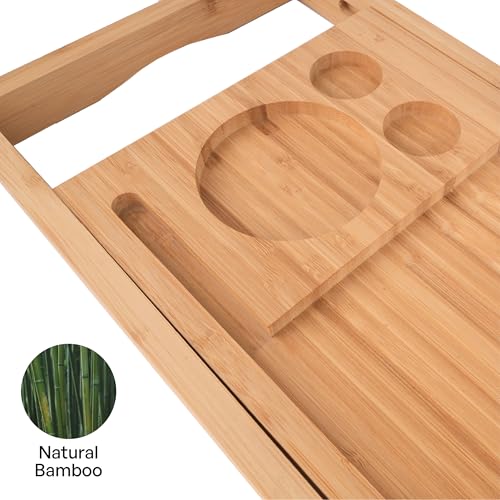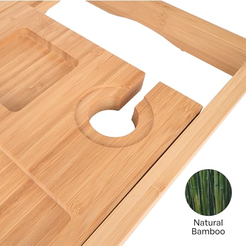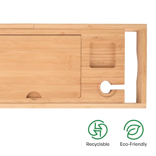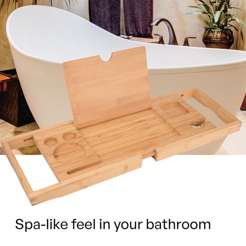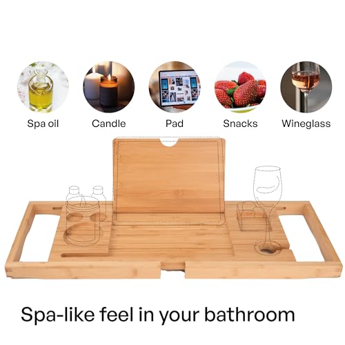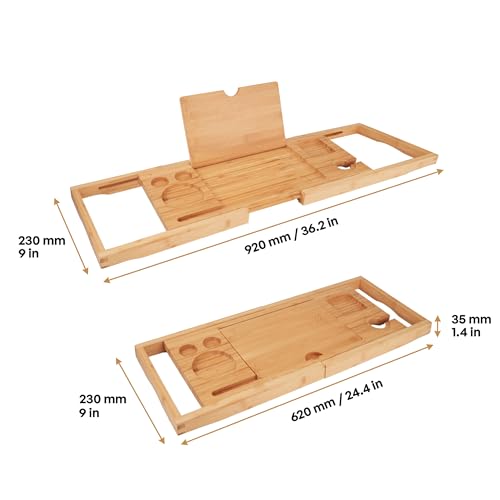 TARUNMO - صينية حمام من الخيزران قابلة للتوسيع من تارونمو مقاس 24.4 انش - 36.4 انش، صينية حوض استحمام خشبية صديقة للبيئة، صينية حوض الاستحمام تناسب معظم احواض الاستحمام، صواني حوض الاستحمام