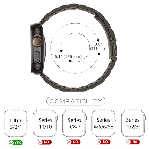 Tasikar - تاسيكار سوار متوافق مع سوار ساعة ابل 49 ملم 46 ملم 45 ملم 44 ملم 42 ملم 41 ملم 40 ملم 38 ملم، سوار بديل من الستانلس ستيل متوافق مع ساعة ابل الترا اس اي سلسلة 10 9 8 7 6 5 4 3