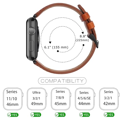 Tasikar - تاسيكار سوار بديل من الجلد الطبيعي متوافق مع ساعة ابل 49 ملم 45 ملم 44 ملم 42 ملم متوافق مع ساعة ابل الترا 2 الترا اس اي 2 اس اي سلسلة 9 8 7 6 5 4 3 2 1