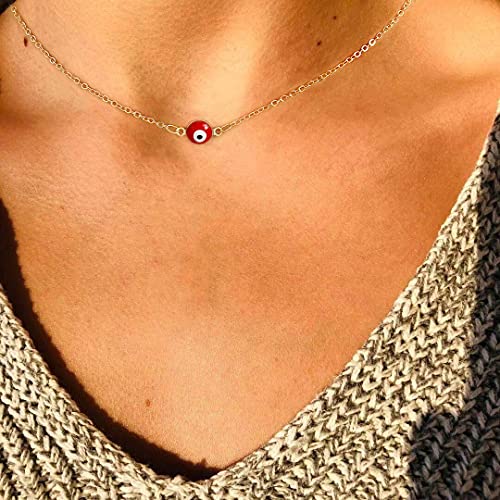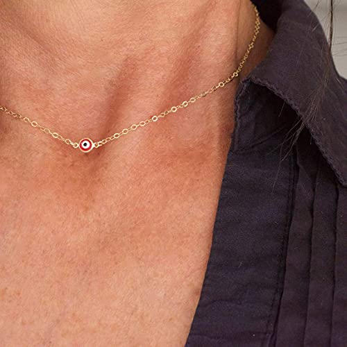 Tasiso - عقد شوكر انيقة للنساء من تاسيسو مطلية بالذهب عيار 14 قيراط بتعليقة بنمط العين الزرقاء الماس والزركون باللون الازرق والابيض بوهو الخرزة الصغيرة هدايا مجوهرات رقيقة معدن