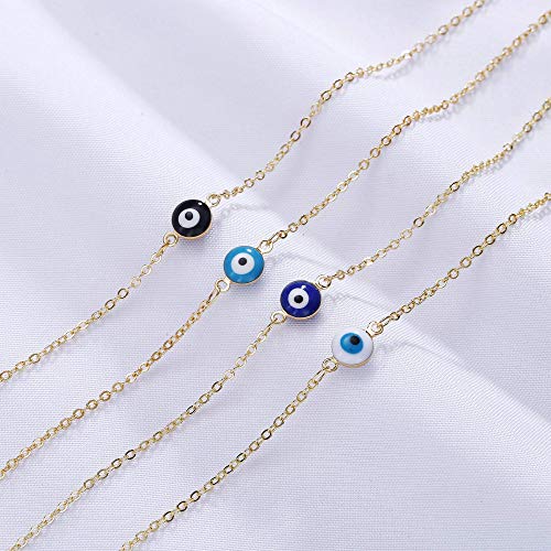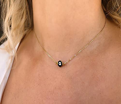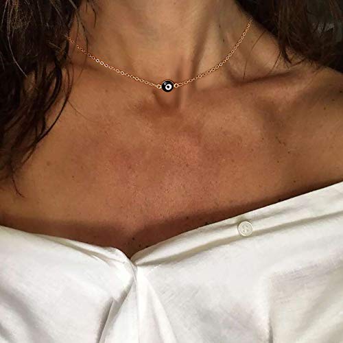 Tasiso - عقد شوكر انيقة للنساء من تاسيسو مطلية بالذهب عيار 14 قيراط بتعليقة بنمط العين الزرقاء الماس والزركون باللون الازرق والابيض بوهو الخرزة الصغيرة هدايا مجوهرات رقيقة معدن