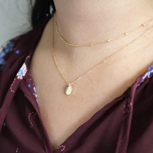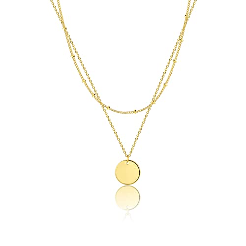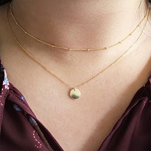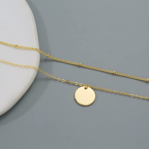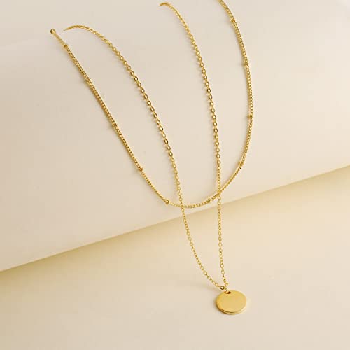Tasiso - سلسلة أنيق بطبقات مع دلاية دائرية صغيرة على شكل عملة معدنية مطلية بالذهب عيار 14 قيراط، هدايا مجوهرات بسيطة من تاسيسو، نحاس بدون أحجار كريمة، للنساء