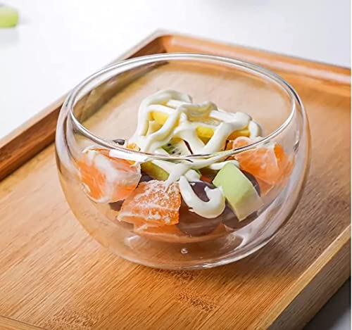 TASKHOUSE - اوعية حلوى سعة 250 مل من تاسك هاوس، وعاء زجاجي مزدوج الجدار، اوعية شفافة للايس كريم والشوربة والارز والوجبات الخفيفة والتوابل، امنة للاستخدام في الميكروويف وغسالة الصحون (22 امبير، عبوة واحدة)
