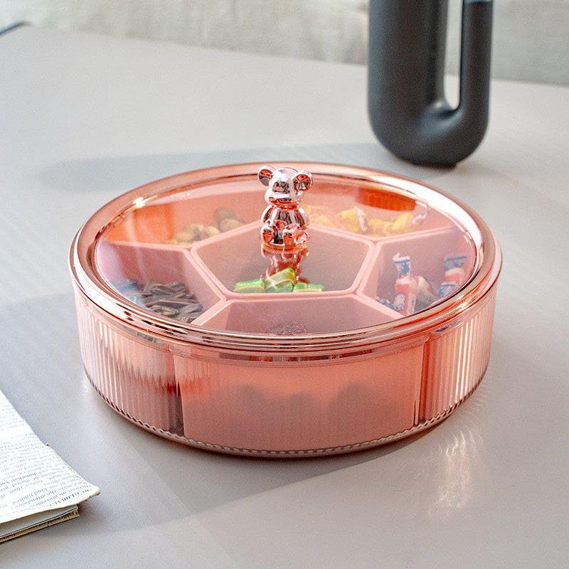 Generic - طبق تسالي بغطاء اكريليك بمقبض دب