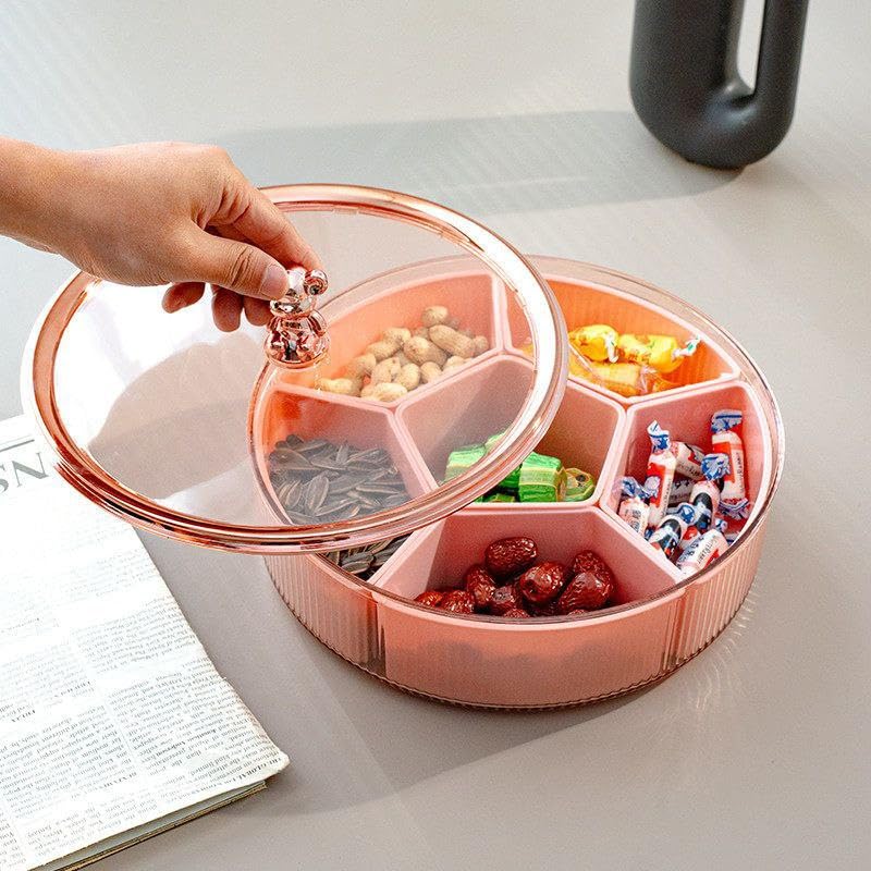 - علبه تسالي ورده بغطاء تحفه علبه اكريليك شفافه مضلعه بغطاء اكريليك بمقبض دب متعدد الاستخدام لتقديم : الفاكهه الطازجه المقطعه والفاكهه المجففه السلطات والمخللات والمكسرات الكحك والبتيفور والكاندي