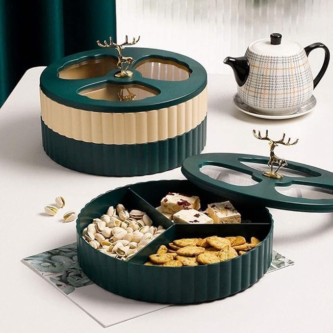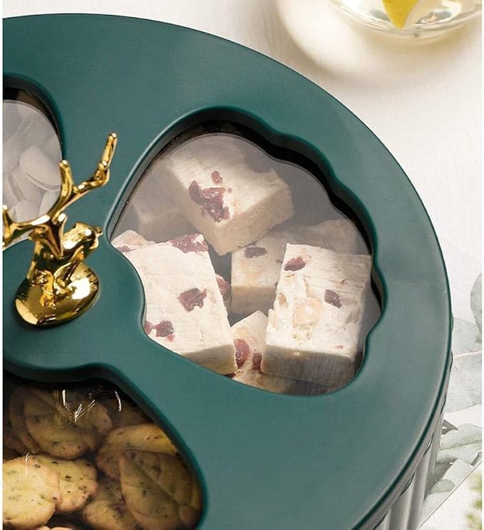 - ✅ تصميم أنيق وراقي: طبق تسالي دورين بغطاء شفاف ومقبض ذهبي، يجمع بين الأناقة والفخامة، ليضيف لمسة مميزة لمائدة الطعام.