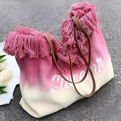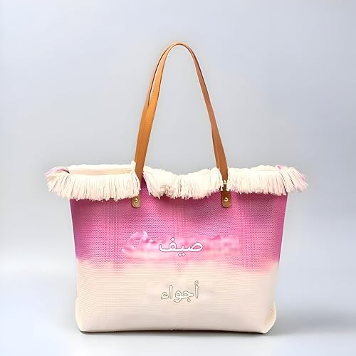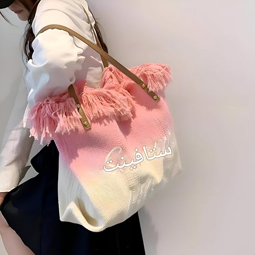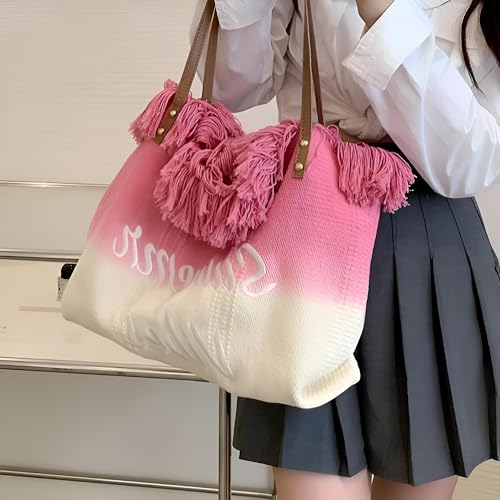 Generic - شنطة يد قماشية مطرزة بشراشيب للنساء - تصميم مخصص بحروف الاحرف مع حزام كتف مريح - نمط هوبو متعدد الاستخدامات بلون ازرق سماوي منعش، مقاس واحد يناسب الجميع