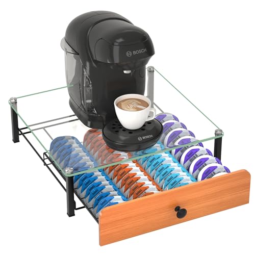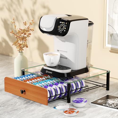 HFHOME - درج زجاجي للكبسولات من تاسيمو: حامل كبسولات معدني 64 وحامل درج لكبسولات القهوة - حامل تكديس موفر للمساحة وحامل عملي لتوزيع الكبسولات