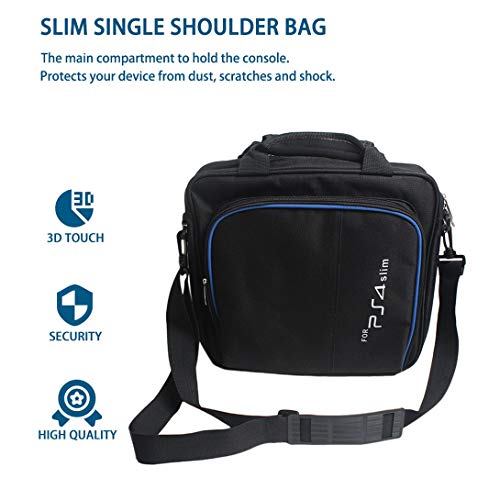 Tatoonly - شنطة كتف لتخزين وحدة التحكم في الالعاب يد للسفر مضادة للصدمات ومقاومة للماء ومناسبة لحقيبة محمولة رفيعة للغاية وملحقات جهاز تشغيل العاب الفيديو الرقمية PS4 من تاتونلي قماش أسود