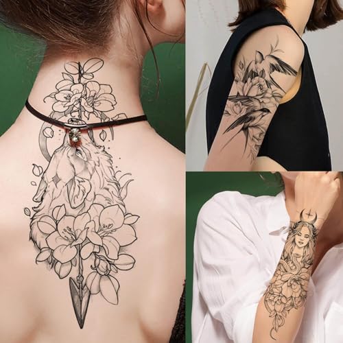 Generic - تاتو تيك 1 ورقة متوسطة شبه دائمة 21 × 4 سم، تاتو مؤقت بتصميم فني للبالغين، يدوم 1-2 اسبوع، مقاوم للماء، مظهر واقعي، بدون لاصق، بدون انعكاس (CH408)