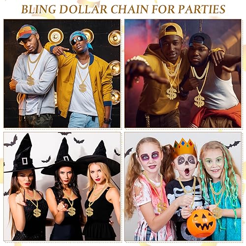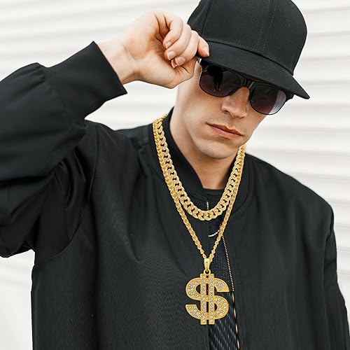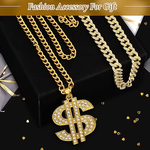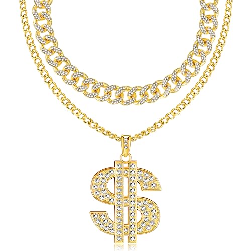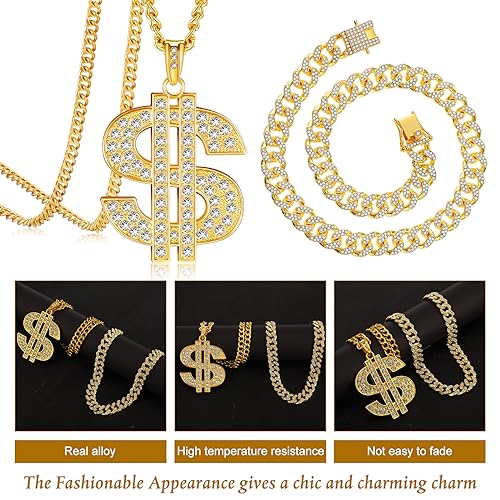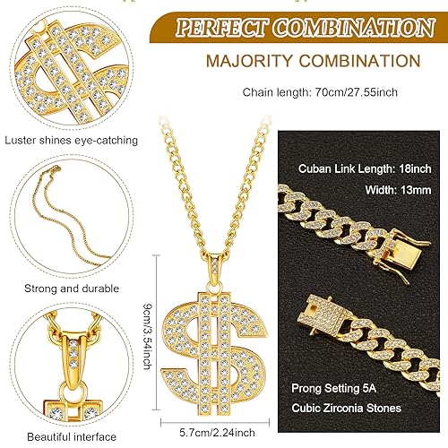 Tatuo - تاتو 3 قطع سلسلة مطلية للرجال مع قلادة علامة الدولار هيب هوب دولار ذهبي ايه نمط عصري حوالي 27.5 انش - 70 سم طول 2.2 بدون احجار كريمة