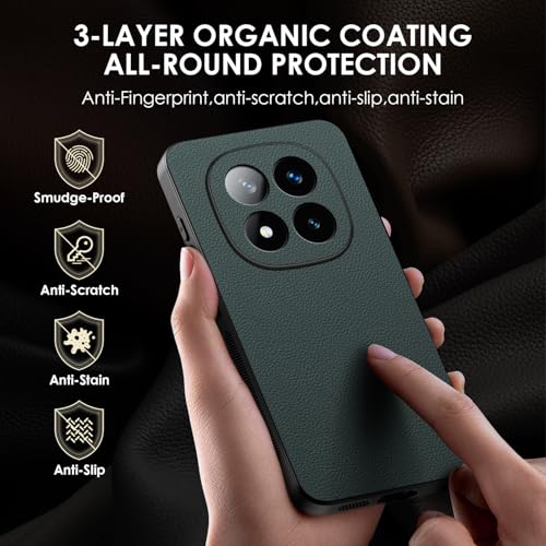 TAUYN - غطاء حماية من تاوين لهاتف شاومي ريدمي نوت 14 برو 4G / بوكو M7 برو 4G، جراب خلفي رفيع للغاية من جلد البولي يوريثين الفاخر، اطار سيليكون ناعم، جراب حماية مضاد للصدمات والخدوش - اخضر