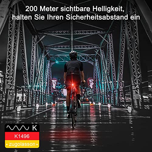 - يتوافق مع لوائح المرور على الطرق الألمانية: اجتاز مصباح الدراجة الخلفي معايير شهادة لوائح ترخيص حركة المرور على الطرق (اس تي في زو) وعلامة المطابقة الأوروبية (سي اي) وتوجيهات تقييد المواد الخطرة (روس)، وحصل على رقم علامة كيه (K1496)، ويتوافق مع لوائح المرور على الطرق الألمانية ويوفر ضمان السلامة الأكثر فعالية لرحلتك.