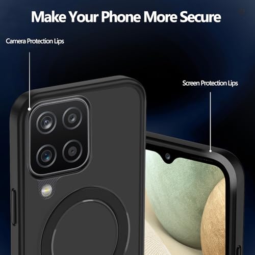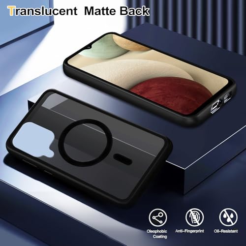 Tawarror - جراب حماية مغناطيسي شفاف مطفى رفيع من بولي يوريثين مقاوم للحرارة ومضاد للخدش لموبايل سامسونج جالاكسي A12 من تاوارور، لون أسود