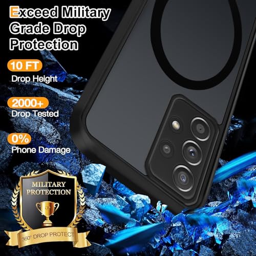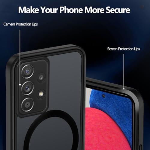 Tawarror - جراب مغناطيسي شفاف غير لامع من البولي كربونات لموبايل سامسونج جالاكسي A52/A52S شبكة الجيل الخامس 5G/شبكة الجيل الرابع 4G، جراب من بولي يوريثين مقاوم للحرارة مضاد للخدش ومضاد للانزلاق من تاورور، أسود