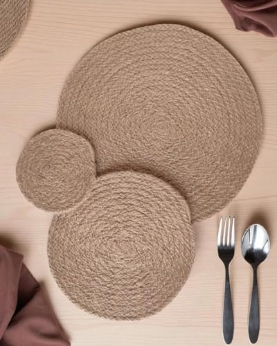 TAYET's - مفرش طاولة طعام دائري من الجوت بلون بيج من الألياف الطبيعية، 15/25/35 سم، قابل للغسل (15 سم) من تايتس