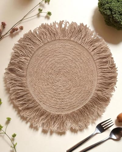 TAYET's - مفرش طاولة من الجوت مع شراشيب من تايتس، طبيعي، صناعة يدوية، 20 سم/30 سم/40 سم، طاولة طعام، دائري (40 سم)