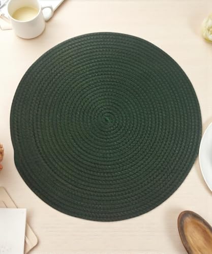 TAYET's - مفرش مائدة دائري من الألياف مصنوع يدويا قابل للغسيل ومناسب كديكور عصري لطاولة الطعام من تايتس، ألوان متعددة (أسود/زيتي/أخضر/أحمر/أصفر)، قطر 35 سم (زيتي)