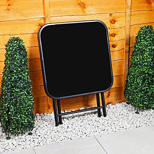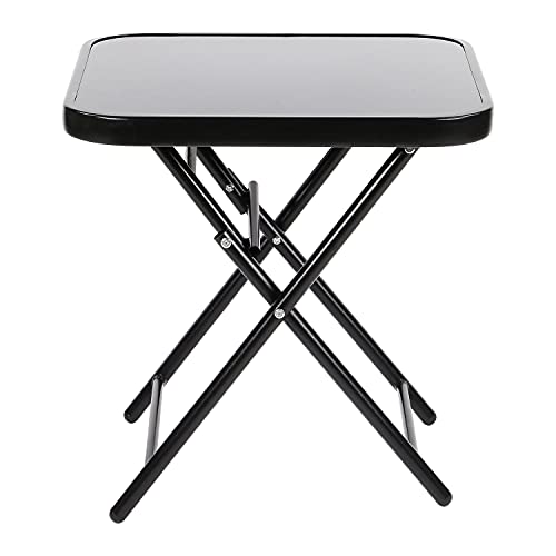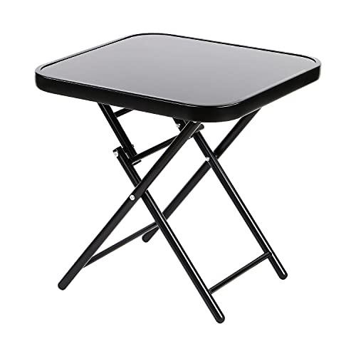 Taylor & Brown - طاولة جانبية للمشروبات قابلة للطي 50 سم من تايلور اند براون، طاولة قهوة قابلة للطي، طاولة حديقة خارجية، طاولة فناء مربعة صغيرة - اسود مع جزء علوي من الزجاج المقوى - 50 × 50 × 52 سم