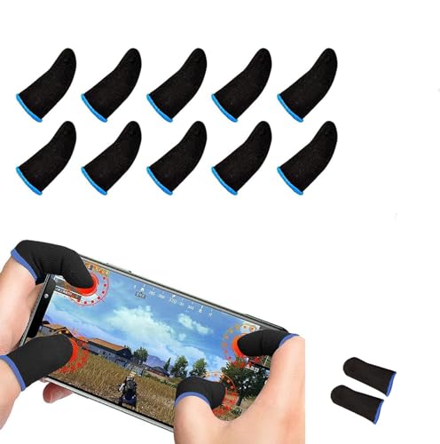 Tazweeq - 10 قطع من قفازات ابهام الالعاب تزويق اكمام اصابع للجوال للعبة بابجي مضادة للتعرق وجيدة التهوية لشاشة اللمس والالكترونيات شريط ذراع نايلون أسود