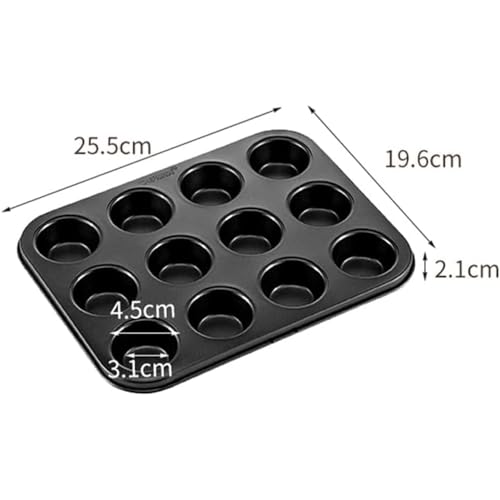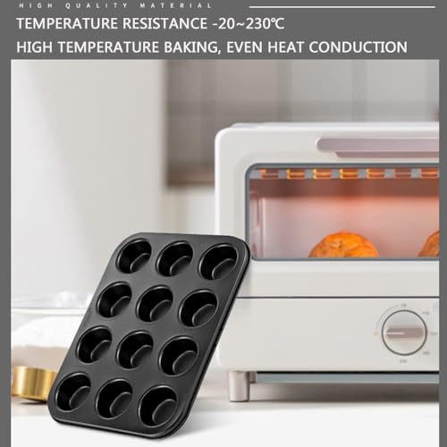 Tazweeq - صينية مافن 12 كوب كب كيك من تازويك خبز غير لاصقة لتارت الكب والمافن الصغير سهلة الفك والتنظيف سامة ومتينة اسود تزويق صلب كربون