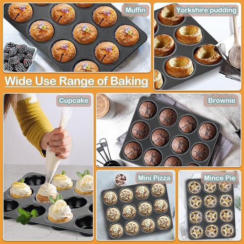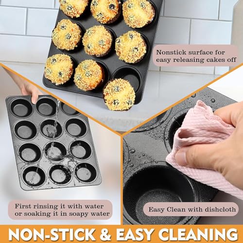 - 【متعة لوقت الخبز】: قالب خبز مكون من 12 كوب ليس فقط للمافن كما أنه رائع للكب كيك وأكواب فطيرة الدجاج وأكثر من ذلك، مناسب لعائلتك. أداة خبز مثالية للمطبخ لصنع الحلوى اللذيذة.