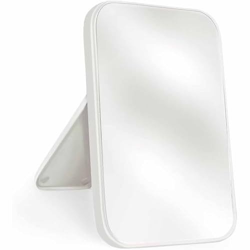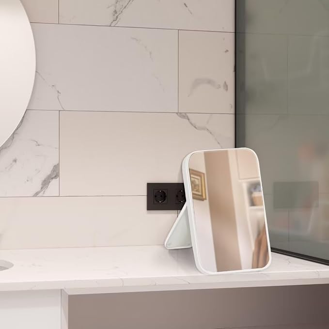 Tazweeq - مراة مستحضرات تجميل لسطح الطاولة 8 انش من تزويق، مراة سفر سهلة الحمل مع حامل (ابيض)