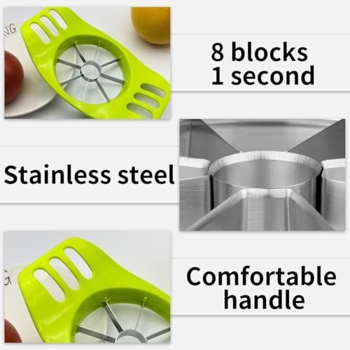 Tazweeq - قطاعة تفاح احترافية من الفولاذ المقاوم للصدأ من تزويق، 8 شفرات حادة، قطاعة تفاح بعدد 8 شفرات حادة، أداة حادة للغاية لإزالة بذور التفاح للفواكه والخضروات (لون أخضر، 8.89 سم)