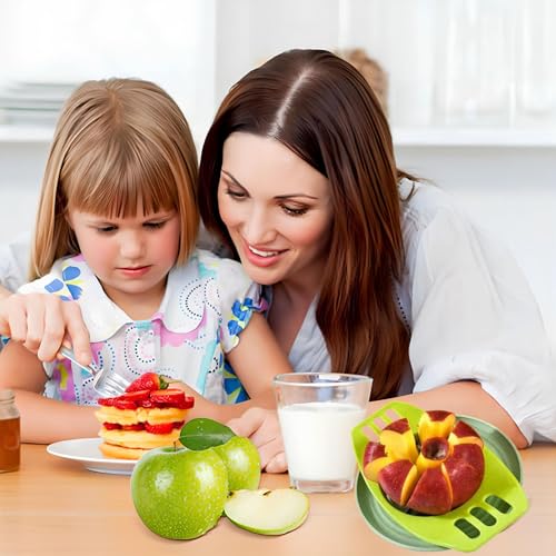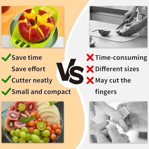- 🍎【تقطيع فعال للفواكه والخضروات】تقطع هذه القطاعة الفواكه/الخضروات بسرعة إلى شرائح متساوية باستخدام أداة إزالة اللب المدمجة، مما يسهل تحضير الوجبات الخفيفة أو الحفلات أو الوجبات.