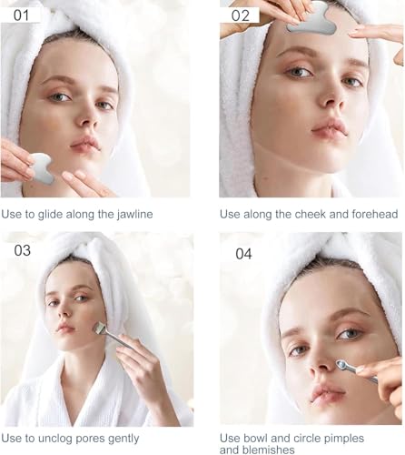 - 😎【أداة للوجه】تساعد على تعزيز الدورة الدموية وتقليل الانتفاخ ونحت خط الفك وتغذية البشرة وتخفيف التوتر.