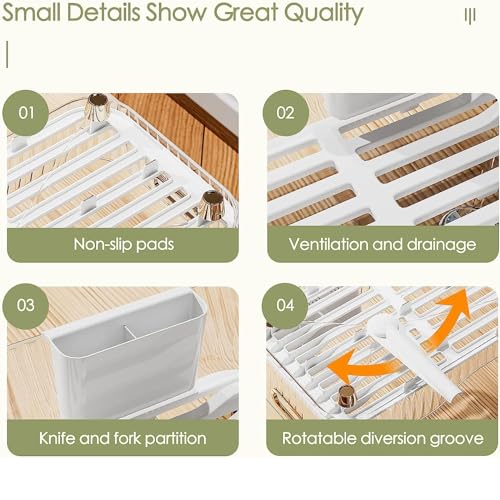 - موفر للمساحة: حجم رف تجفيف الأطباق هو 17 انش 105 انش 5 انش فقط، يمكن وضع جميع أنواع أواني الطعام مثل الأوعية والأطباق والأواني والأكواب الفضية وما إلى ذلك، مما يسمح لك بتوفير مساحة على الطاولة