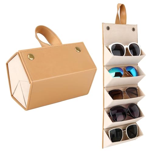 Tazweeq - منظم النظارات الشمسية من تزويق، حافظة تخزين نظارات السفر 5 فتحات، صندوق حامل نظارات قابل للطي، حاويات عرض النظارات الشمسية المحمولة للنساء والرجال
