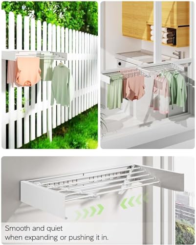 - 【زيادة كفاءة توفير المساحة】جرب متعة تحسين مساحتك وتوفير المال والغرفة مع رف الغسيل هذا المثبت على الحائط. بفضل تصميمها الذكي القابل للطي والمواد عالية الجودة، لن تحتاج إلى استبدالها كل عام مقارنة برفوف التجفيف الأخرى الرخيصة المثبتة على الحائط للغسيل وسيكون لديك منطقة غسيل منظمة جيدًا.