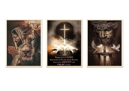 TBKHUDBI - مجموعة من 3 بوسترات قماشية مطبوعة عليها صورة المسيح من تي بي كيه اتش يو دي بي اي (طيعة المسيح، مقاس 30× 40 سم)
