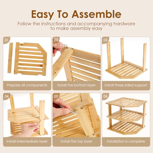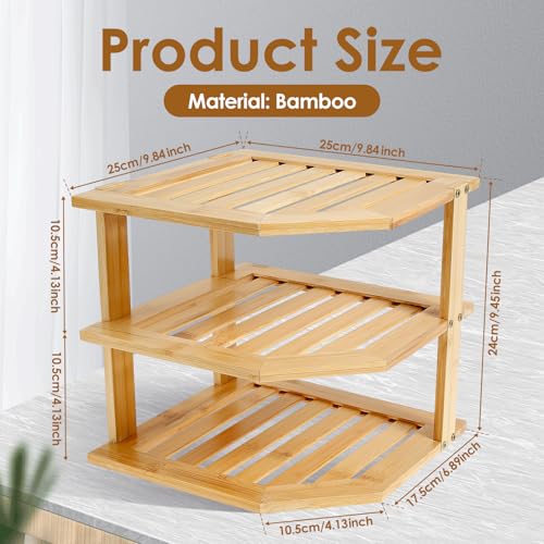 Tcwhniev - رف منظم للخزانة من 3 طبقات، رف توابل للمطبخ والحمام، منظم أطباق متين رف زاوية من الخيزران، رف لحمل الأطباق لسطح الطاولة موفر للمساحة من Tcwhniev